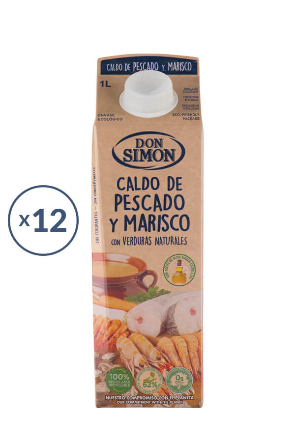 Caldo Don Simón 100% natural de pescado con verduras. Hecho con productos naturales sin colorantes ni conservantes. Nuestra exclusiva receta le otorga un sabor único y garantiza el éxito en la mesa.