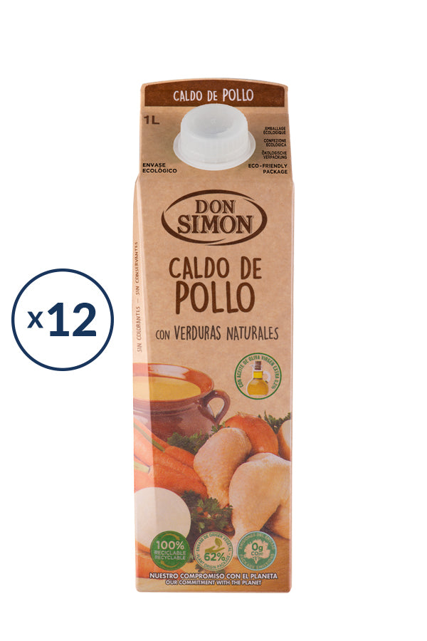 Caldo Don Simón 100% natural de pollo con verduras. Elaborado con productos naturales sin colorantes ni conservantes. Nuestra exclusiva receta le otorga un sabor único y garantiza el éxito en la mesa.