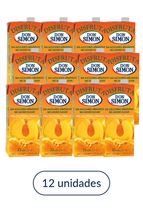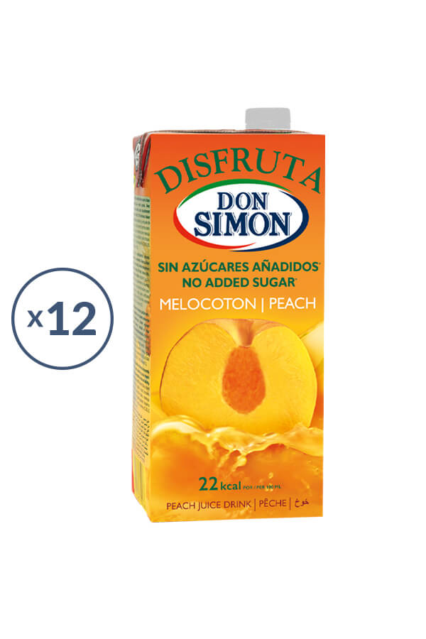 Disfruta Don Simón de melocotón, bajo en calorías, sin azúcares añadidos.