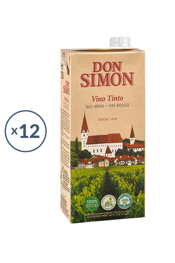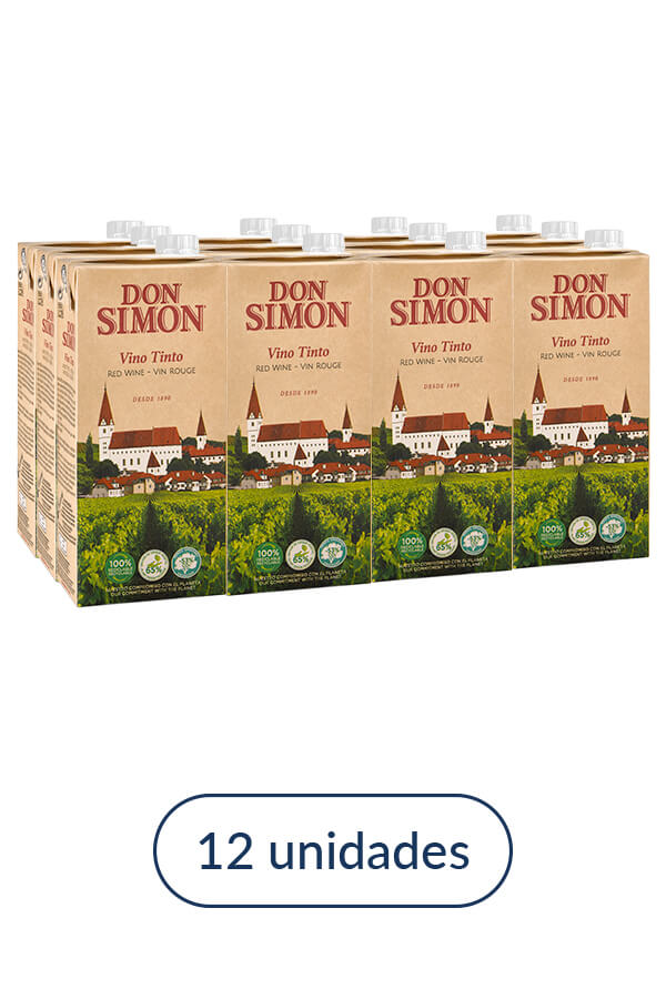 Vino tinto Don Simón en brik. Se caracteriza por un popaje sostenido, brillante. En nariz es franco, con notas vegetales y aromas de frutas confitadas. En boca es equilibrado, con evoluciones que recuerdan la nariz.