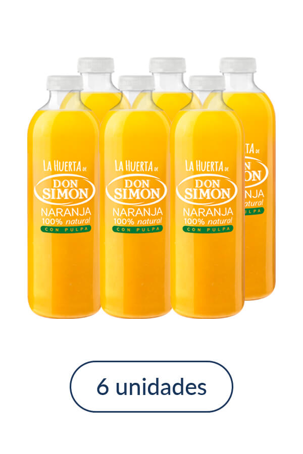 Zumo La Huerta de Don Simón 100% Exprimido, de naranja CON pulpa. No procede de concentrado. Zumo natural elaborado con naranjas de nuestra tierra recogidas y exprimidas en sólo 24 horas. Lleno de vitaminas.