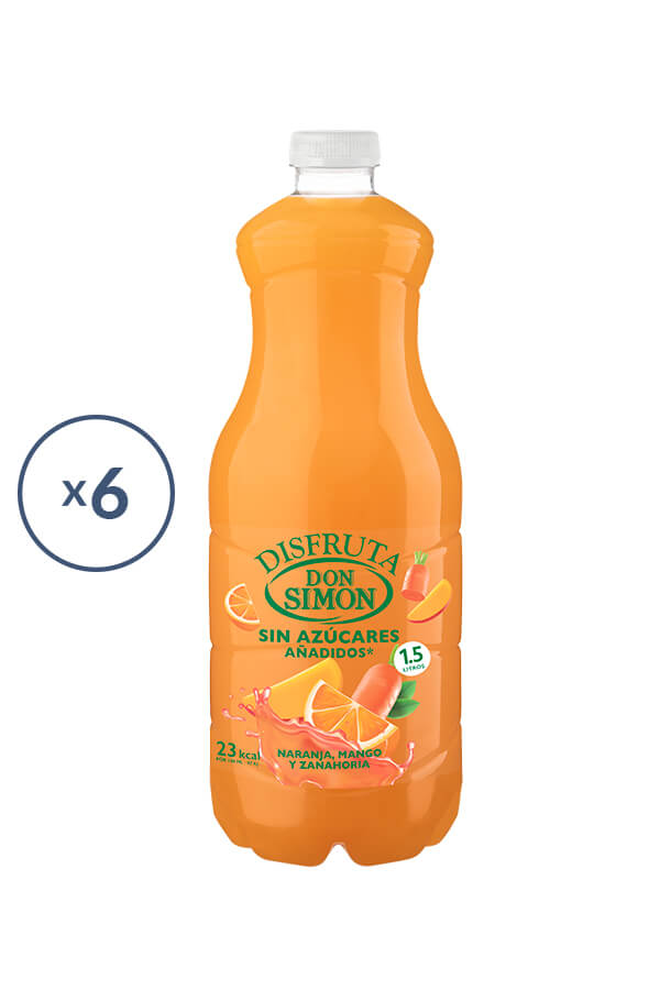 Disfruta Don Simón, sin azúcares añadidos, bajo en calorías. Néctar elaborado con naranja, mango y zanahoria.
