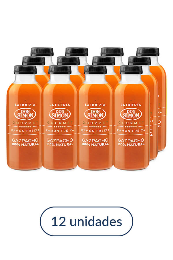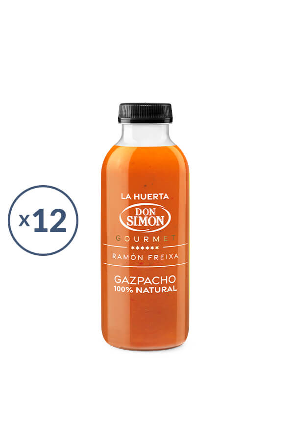 Receta elaborada con la colaboración del prestigioso chef Ramón Freixa. Gazpacho 100% natural, elaborado directamente a partir de hortalizas frescas, de acuerdo con la receta tradicional, lo mejor de la dieta mediterránea. Contiene gluten.
