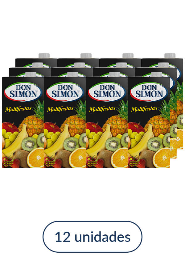 Néctar Don Simón multifrutas. Elaborado con naranja, piña, plátano, uva, manzana, kiwi, fresa y limón. Los néctares especiales Don Simón tienen todo el sabor y las propiedades nutritivas de la fruta.