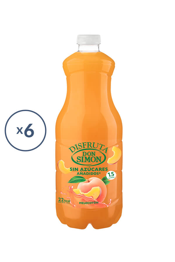 Disfruta Don Simon de melocotón. Sin azúcares añadidos. Néctar de melocotón bajo en calorías. Botella PET de 1,5 litros.
