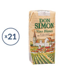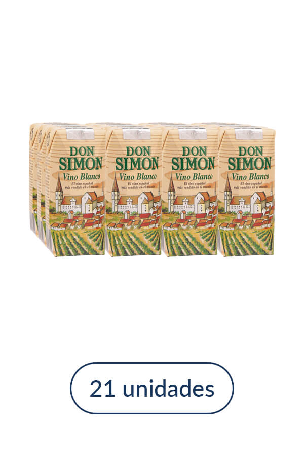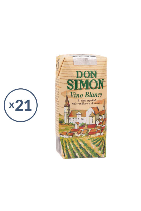 Vino Don Simón en brik. Vino blanco. Se caracteriza por un color amarillo pajizo, con reflejos brillantes. La nariz es franca, con notas de manzana confitada que evolucionan en boca. El conjunto es flexible, afrutado e intenso.