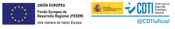 Este proyecto está cofinanciado por el Centro para el Desarrollo Tecnológico Industria (CDTI) y el Fondo Europeo de Desarrollo Regional (FEDER) dentro del Programa FEDER Innterconecta, cuyo objetivo es promover la generación de capacidades innovadoras a través de proyectos de desarrollo experimental.