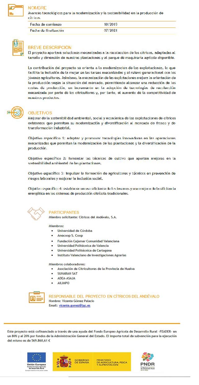 - Empresa beneficiaria: CITRICOS DEL ANDEVALO S.A.