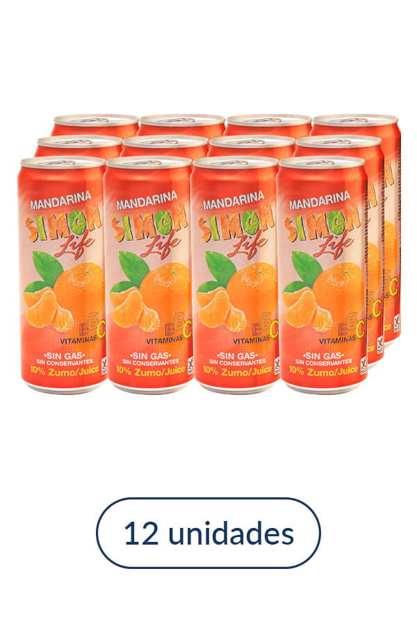 Simon Life de mandarina. Bebida refrescante de zumo de frutas con vitaminas, sin gas y sin conservantes.Consumo, conservación y recomendaciones:-Mantener refrigerado.-Agitar antes de servir.